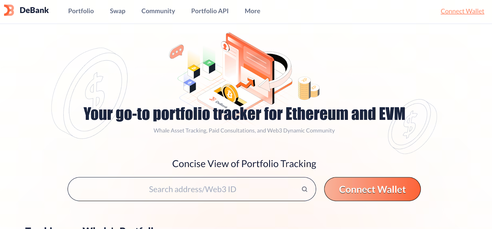 DeBank es una plataforma para el seguimiento de activos y el análisis de portafolios en finanzas descentralizadas (DeFi), que permite consultas de activos en tiempo real entre cadenas, estadísticas de posiciones de monederos e información sobre comportamientos en cadena. Cubre los principales ecosistemas de blockchain públicos, como Ethereum, BSC y Polygon. Los usuarios pueden conectar sus monederos o introducir una dirección para visualizar un panel unificado con distintos tokens, activos NFT y participación en protocolos DeFi.