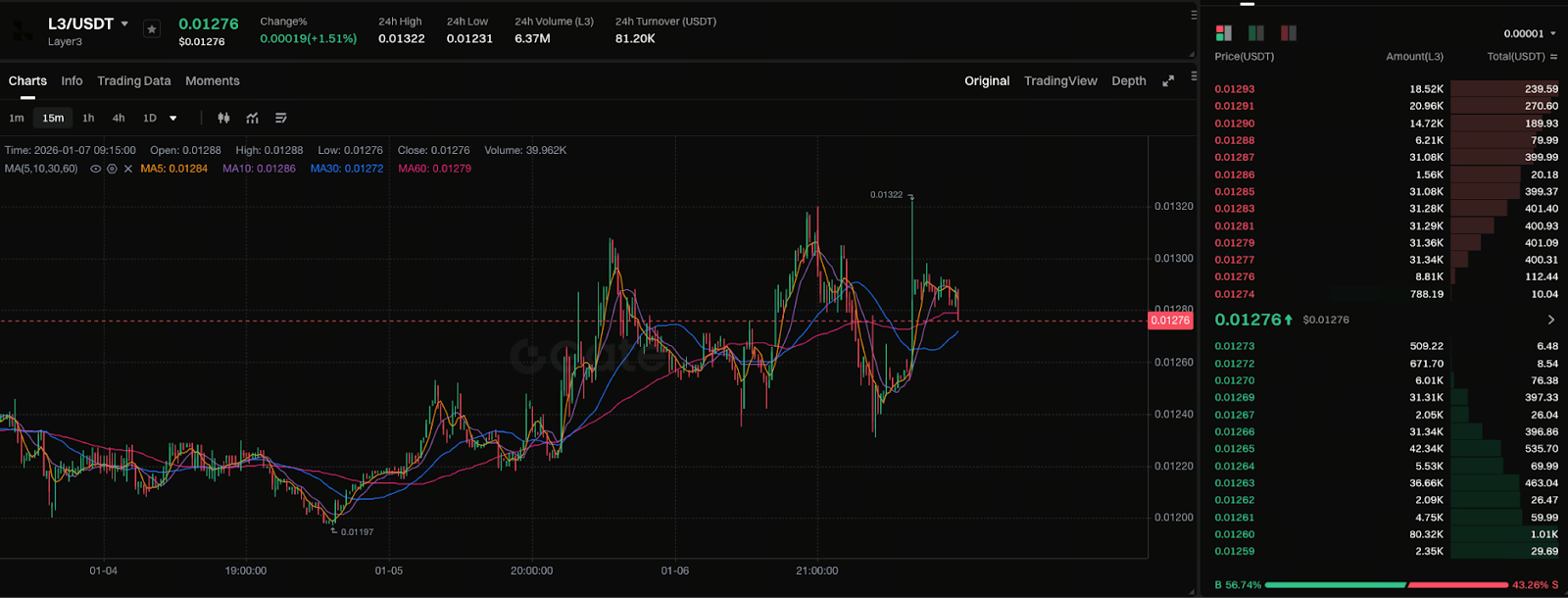 На 7 января 2026 года L3 торговался примерно по цене $0,01276.